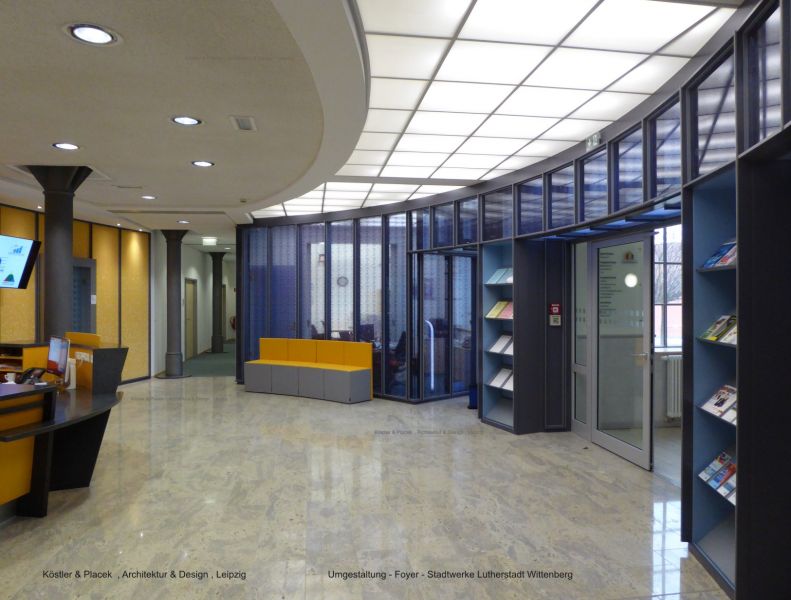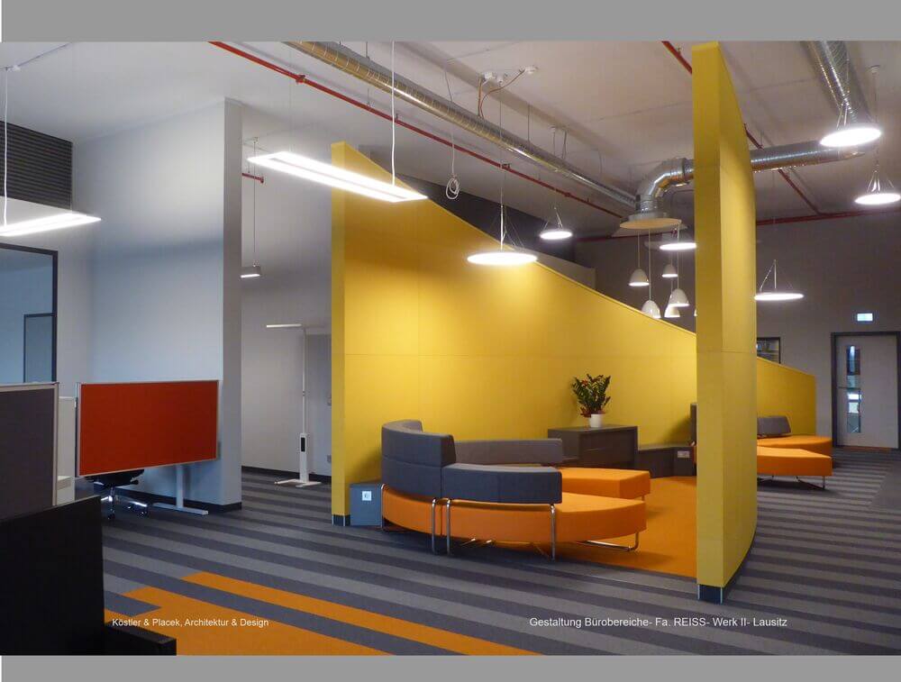 Innenarchitektur für Unternehmen - Verwaltungsgebäude, Bürogebäude, Sozialgebäude, Kombi- oder Teambüro, coworking, Empfangsbereiche, Foyers, Lounge, Shops, Hochschulen. Sanierungen im Bestand, Erweiterungen, denkmalgerechte Gestaltungen.