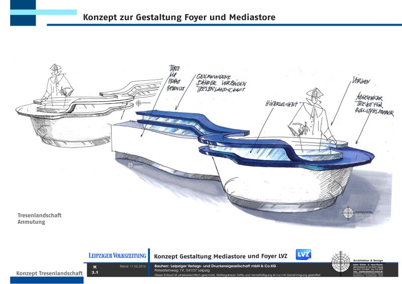 Gestaltung Foyer und Tresen Mediastore LVZ